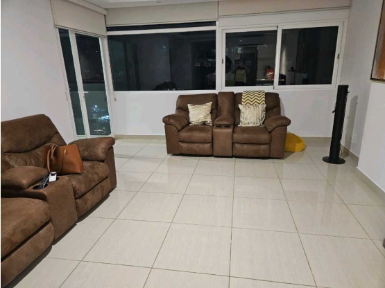 2 recamaras, 2 baños, 1 estacionamiento, piso alto, balcon amplio que de pie se ve el mar, área social completa, 101 mts, totalmente amoblado con centro de lavado, estufa con horno, microwave, calentador de agua, refrigeradora, 3 aires acondicionados, juego de sillones, un juego de comedor en el balcon, dos camas, en la recamara principal hay un escritorio con su silla de trabajo.