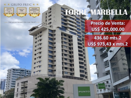 Dólares AmericanosVenta de apartamento en Marbella, Bella Vista, Panamá en PH Torre Marbella de 436.60 mts2 en una increíble ubicación en el centro Bancario de la Ciudad, cerca de la Cinta Costera y de muchas plazas comerciales.